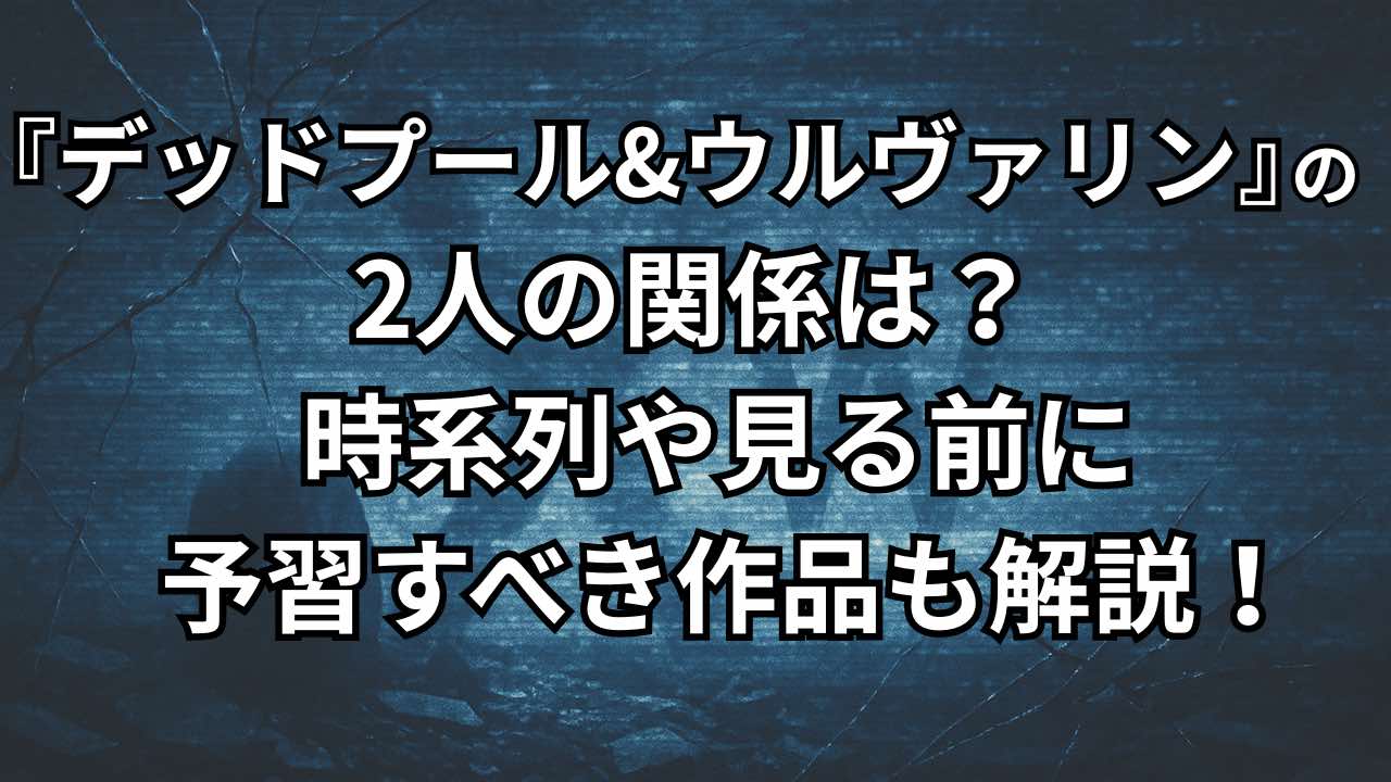 そんなデッドプール&ウルヴァリンの関係について、時系列を追って徹底解説していきます