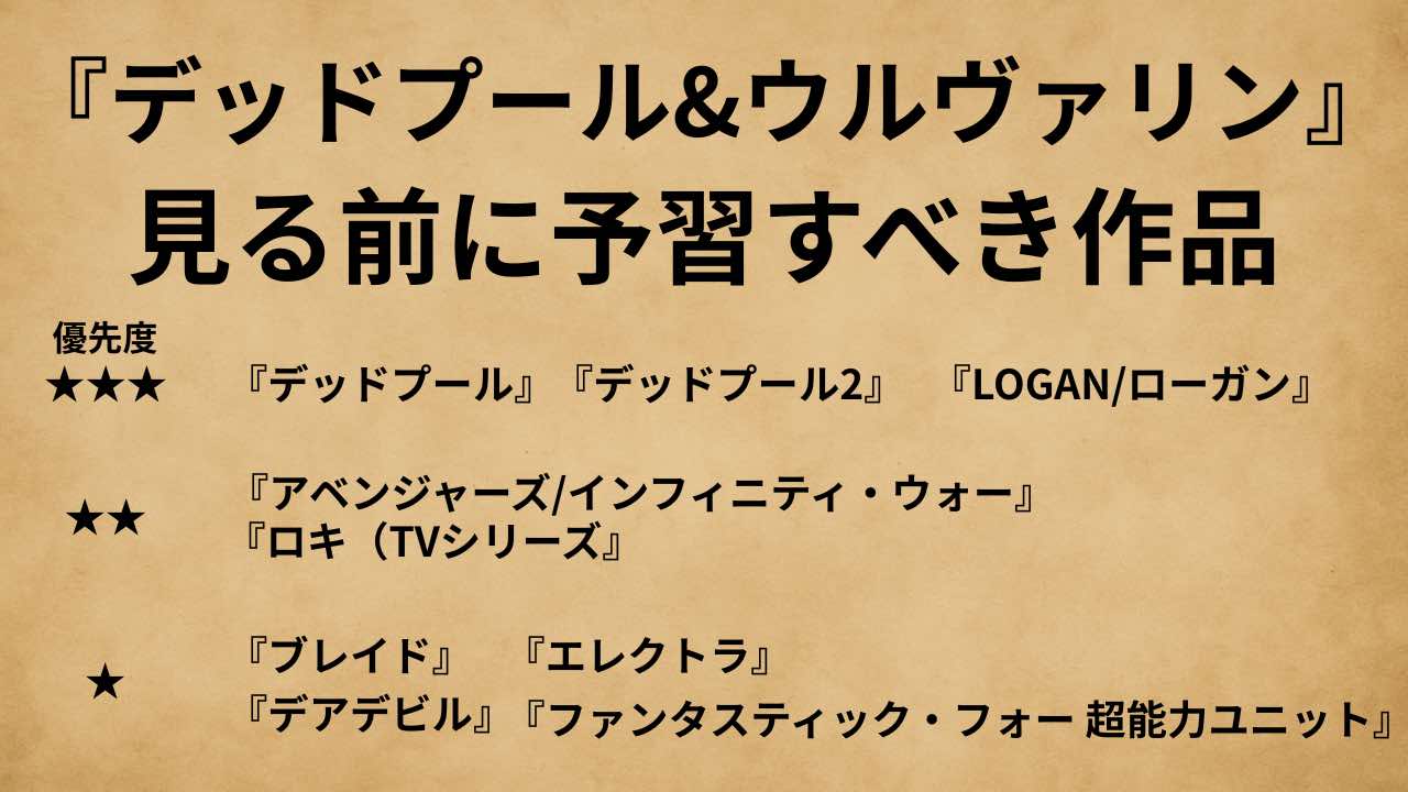 デッドプール3を見る前に知っておきべき予習作品を優先度で解説。