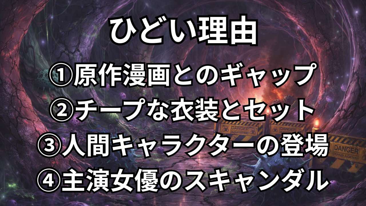 その結果として生じた原作漫画との違和感や評価のズレが、「ひどい」と感じられる要因になっている可能性があります。