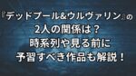 ホームデッドプール&ウルヴァリン「 デッドプール&ウルヴァリン 」 一覧 洋画 2025/11/19 映画デッドプール&ウルヴァリンの関係と時系列。見る前に知っておくべき見る順番を解説。 この記事を読む